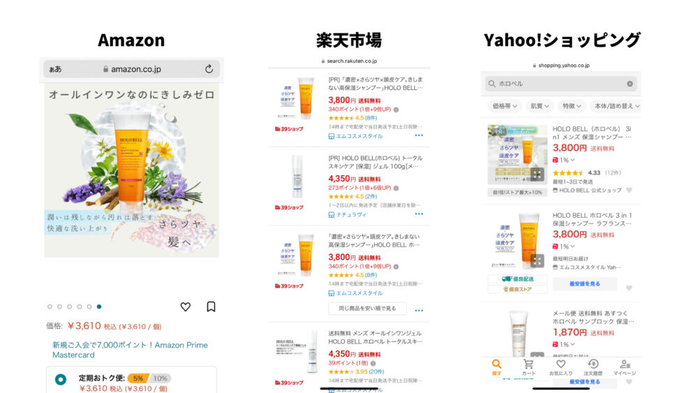 では、HOLO BELL(ホロベル)「3in1保湿シャンプー」をどこで購入すれば最安値なのか。